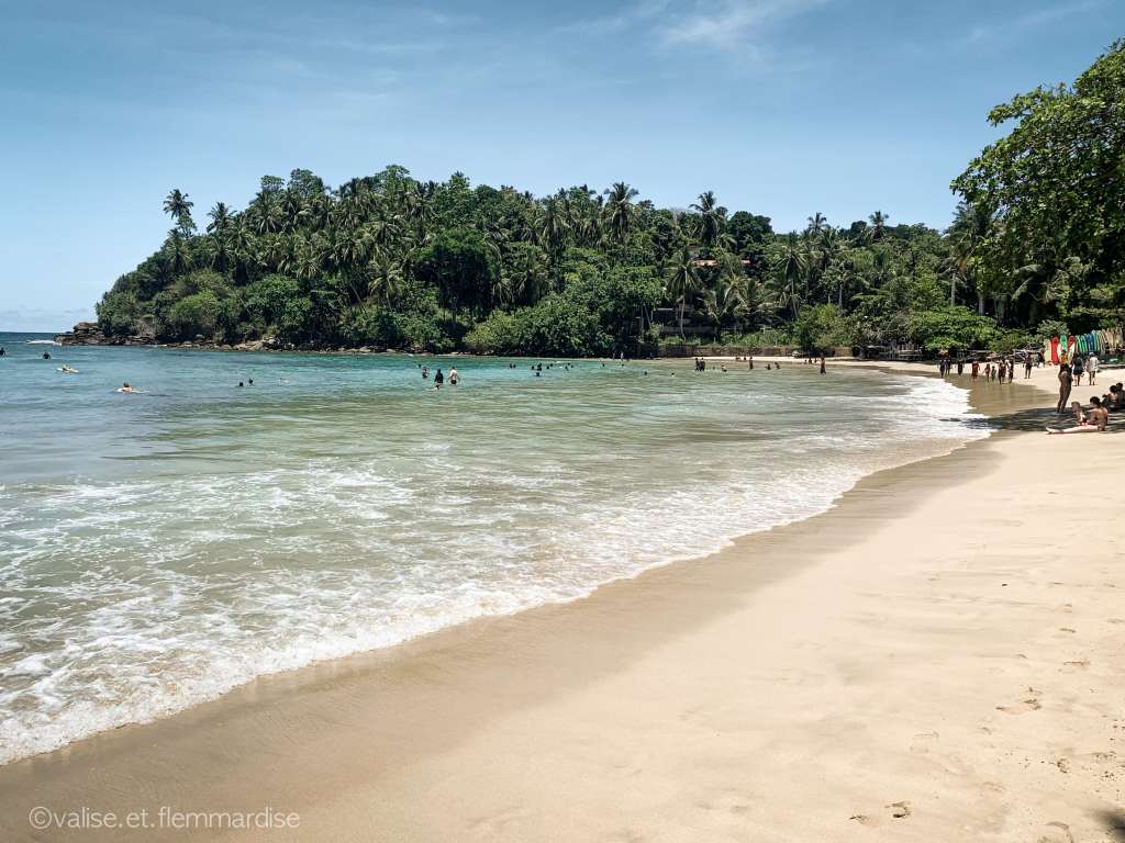 - La plage de Hiriketiya : celle-ci est située à mi-chemin entre Tangalle et Matara et nous a été conseillée car le courant y est modéré en avril (comme à Silent Beach, alors que les autres sont déjà assez agitée). Elle est clairement moins belle que Silent Beach et il y a bien plus de monde mais il y a plus d’infrastructures et pour les amateurs, des écoles de surf pour s’essayer à la glisse !