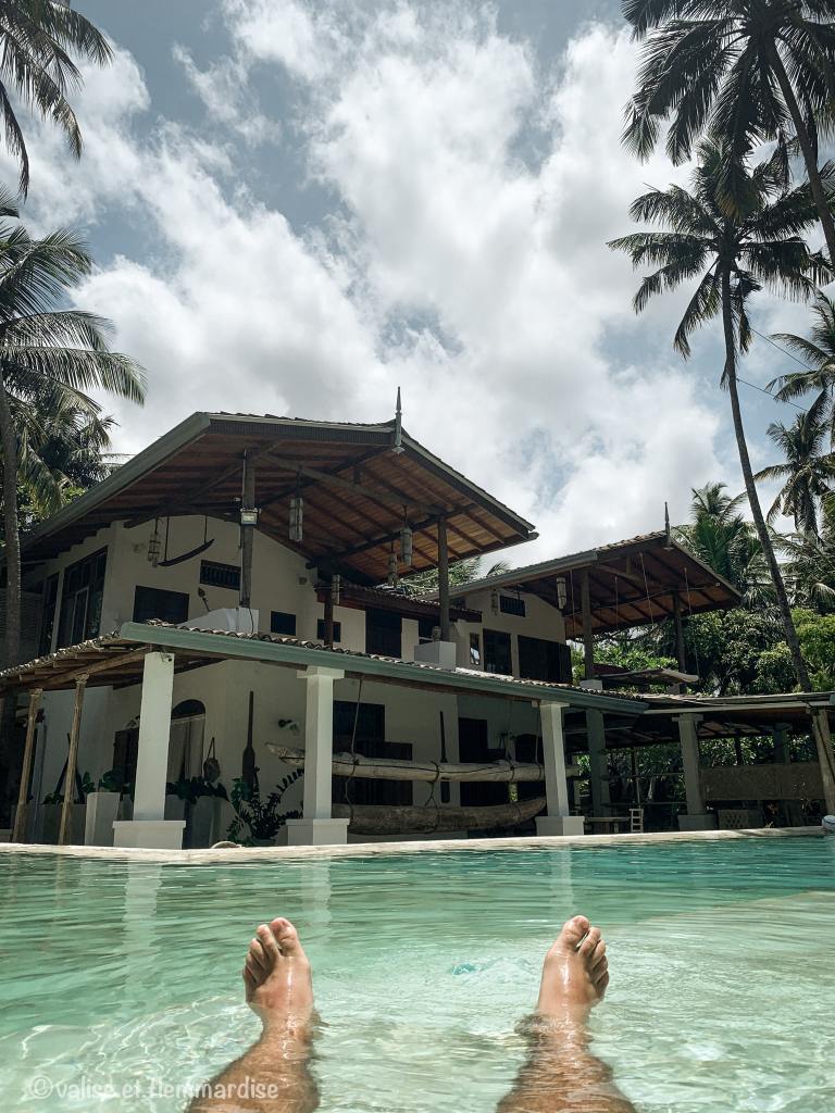 Très bel hôtel ici aussi, le Deep Blue. Plusieurs chambres réparties sur une superbe propriété avec une piscine canon et un petit déj de folie ! L’hôtel est tout proche de la plage de Polhena où on peut nager avec les tortues. Le seul hic c’est qu’il n’y a pas de clim… on a passé une mauvaise première nuit mais pour la seconde, on a déplacé le lit sous le ventilateur au plafond et c’était beaucoup mieux ! Avec ce petit tip, on peut te conseiller cet hôtel sans hésiter 😃.
