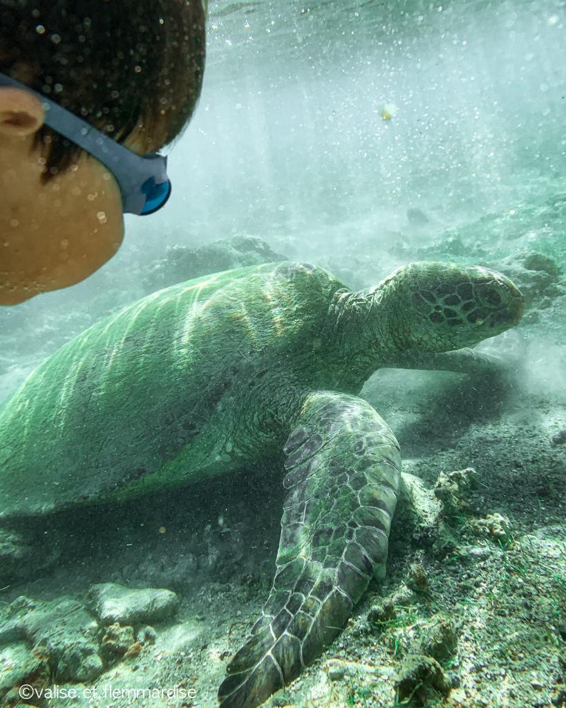 - Nager avec les tortues à Polhena : ça se passe à Polhena Beach où les tortues viennent se nourrir le matin surtout. Il est conseillé d’y aller très tôt, vers 7h du matin pour les observer dans la tranquillité. C’est ce qu’on a fait deux jours d’affilé et on y était quasiment seuls. Il y a très peu de profondeur ce qui est pratique pour les petits enfants. Du haut de ses 3 ans et demi, Léo a pu nager avec les tortues… des instants magiques qu’on n’oubliera jamais !