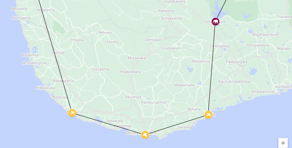 - Udawalawe > Tangalle : 55 km, 1h45