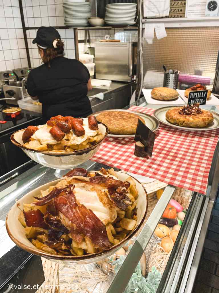 - Le mercado San Miguel : Un très grand marché couvert qui fait plutôt penser à un food-court. C’est le plus grand mais aussi le plus connu, par conséquent il attire énormément de monde, et c’est assez difficile d’y circuler ou d’y trouver une place assise. On y trouve tout un tas de restaurants différents mais aussi une pâtisserie, une charcuterie, fromagerie, etc. Toutefois les prix sont vraiment très chers.